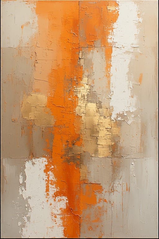 Tangerine and neutrals in a dynamic rhythm for boardrooms or living spaces.